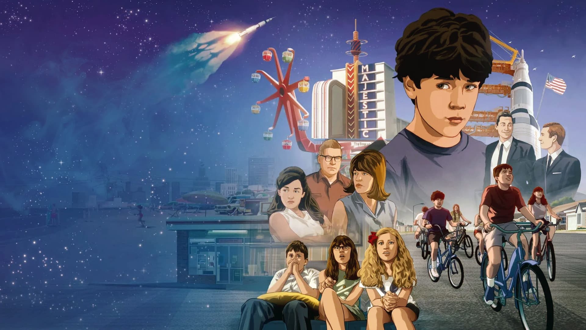 Apollo 10½: A Space Age Childhood is a rotoscope-animated film by Richard Linklater blending autobiographical nostalgia and playful fantasy around the summer of 1969 and the Apollo 11 mission, seen through the eyes of a 10-year-old boy growing up in Houston. The film is primarily a contemplative, melancholic work aimed at an adult or mature teenage audience, with a detached voice-over narration that feels more like a cinematic essay than a conventional adventure film. Sensitive elements are mostly contextual and thematic, including references to the Vietnam War, Cold War nuclear threats, background mentions of death in a historical context, and adult characters drinking and smoking in a period-accurate setting without glorification. Parents should be aware that despite its animation style, this is not a children's film, and it will feel slow and inaccessible to children under 10 or 12, but can become a rewarding conversation starter about space history and 1960s America for preteens and teens.
