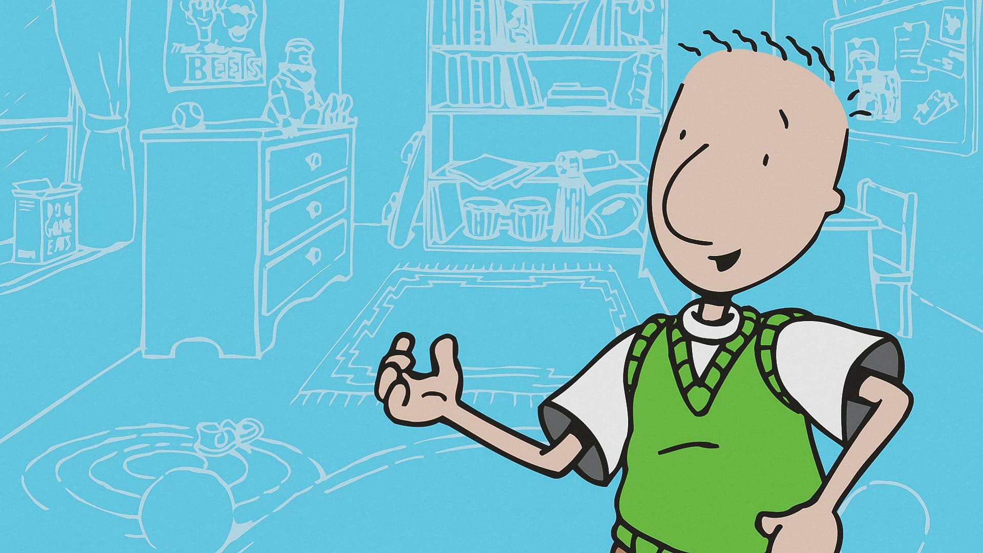 Doug est une série d'animation très douce, pensée pour les enfants, qui suit le quotidien scolaire et familial d'un garçon imaginatif dans une ambiance légère, humoristique et rassurante. Les éléments sensibles concernent surtout de petites tensions ordinaires de l'enfance, comme la peur d'être ridicule, le souhait d'être accepté, quelques moqueries entre camarades et une romance innocente autour d'un coup de cœur d'école. L'intensité reste faible et la série ne contient pas de violence marquée, de langage grossier important, ni de contenu sexuel ou lié aux substances, même si certains enfants sensibles peuvent réagir aux épisodes centrés sur la gêne sociale ou le harcèlement léger. Pour la plupart des enfants dès 4 ans, le contenu est accessible, toutefois un accompagnement parental peut aider à parler de l'estime de soi, des rumeurs et de la manière de gérer la pression du groupe. Le style narratif, avec journal intime et séquences d'imagination, peut aussi encourager l'enfant à exprimer ses propres émotions et à distinguer les peurs exagérées de la réalité.