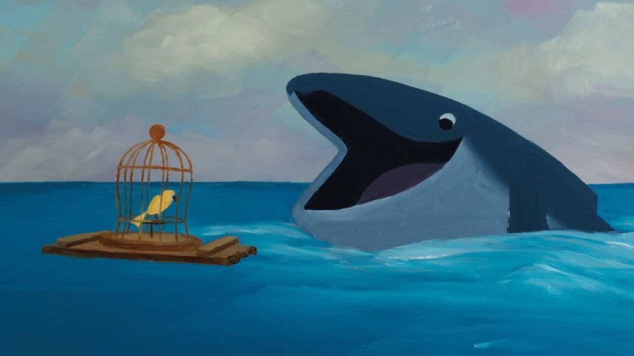 Repoussé par les siens car il ne sait pas chanter, un baleineau erre dans l'océan et brave de nombreux dangers. Lorsqu'il remonte à la surface, il rencontre un oiseau en cage, seul rescapé d'un naufrage. L'oiseau lui, chante merveilleusement bien...